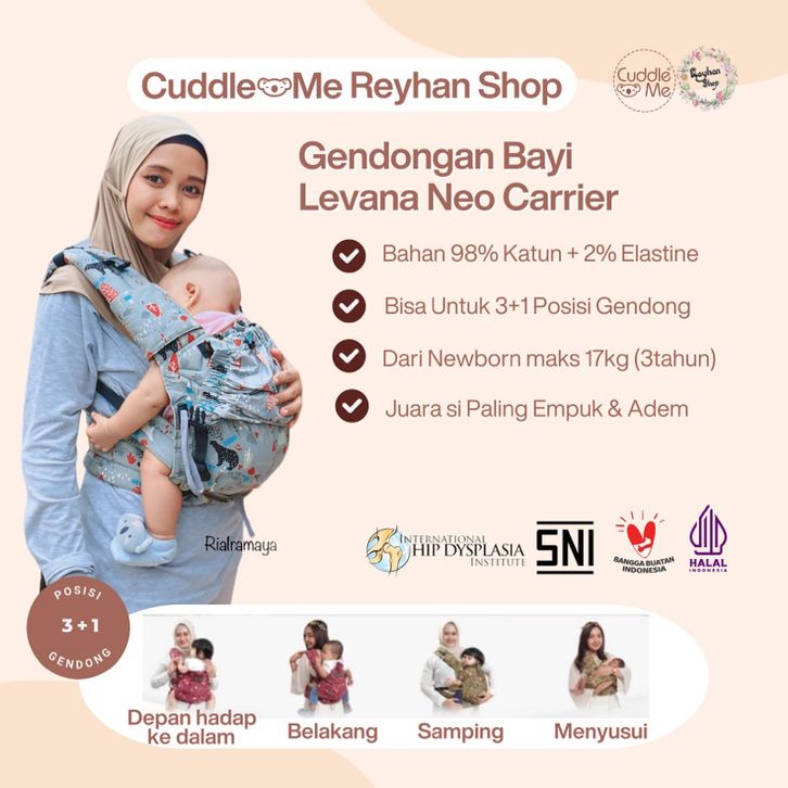 gendongan bayi CUDDLEME Gendongan Bayi Levana Carrier Newborn Gendong Kanguru Ringan SSC M Shape Adjustable