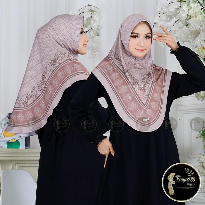Kesya789 Hijab Bergo Instan Daily Jersey Motif Printing Bunga Azizah - Hitam