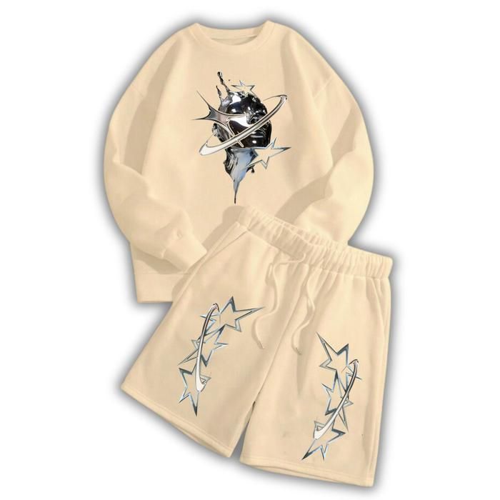 STREES One Set Crewneck & Shortpant Silverstar Setelan Berbahan Kain Fleece Lembut Adem Size M-XL - PUTIH M