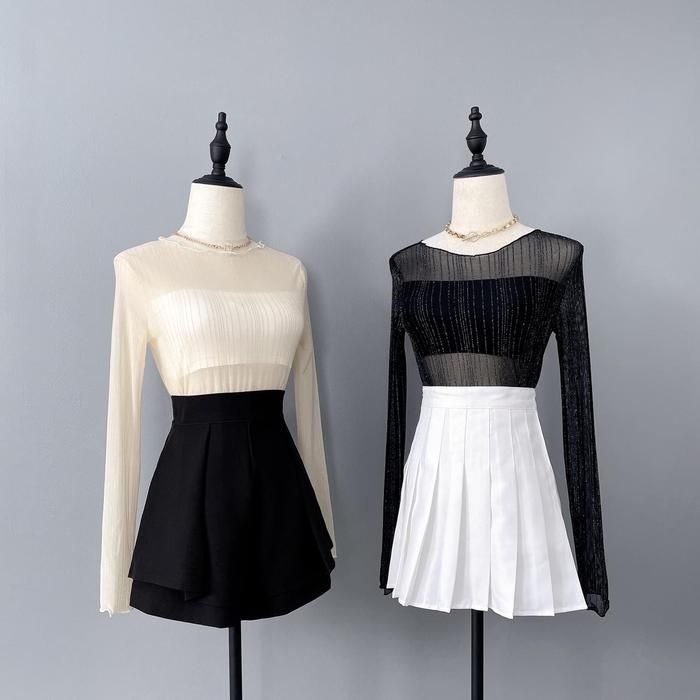 MODAMYTH H21 - ATASAN LENGAN PANJANG TRANSPARAN LONG SLEEVE KOREAN PREMIUM Wanita Top - CREAM M