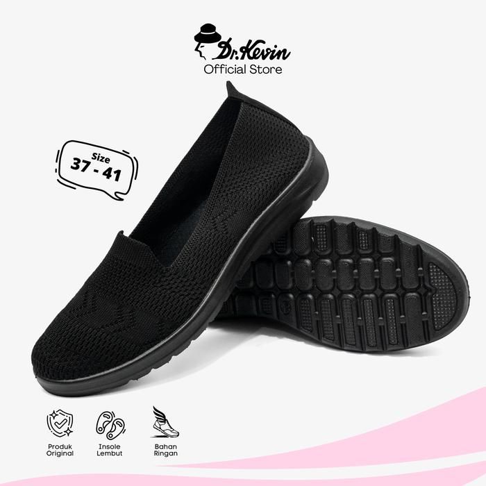 Dr. Kevin Sepatu Olahraga Sport Wanita Sneakers Rajut Slip On 559-007 - HItam 39