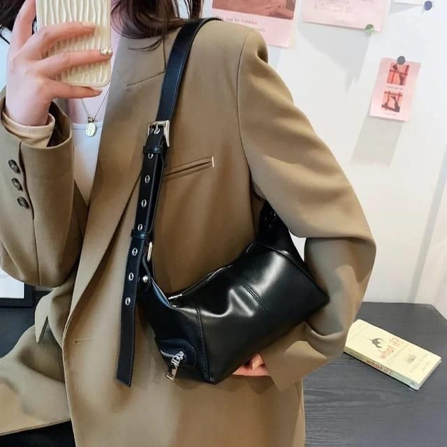 [Beli Lokal] Tas bahu wanita AJUNA - Tas selempang terbaru 2024 - Tas wanita terbaru - Korean style Hitam - Hitam
