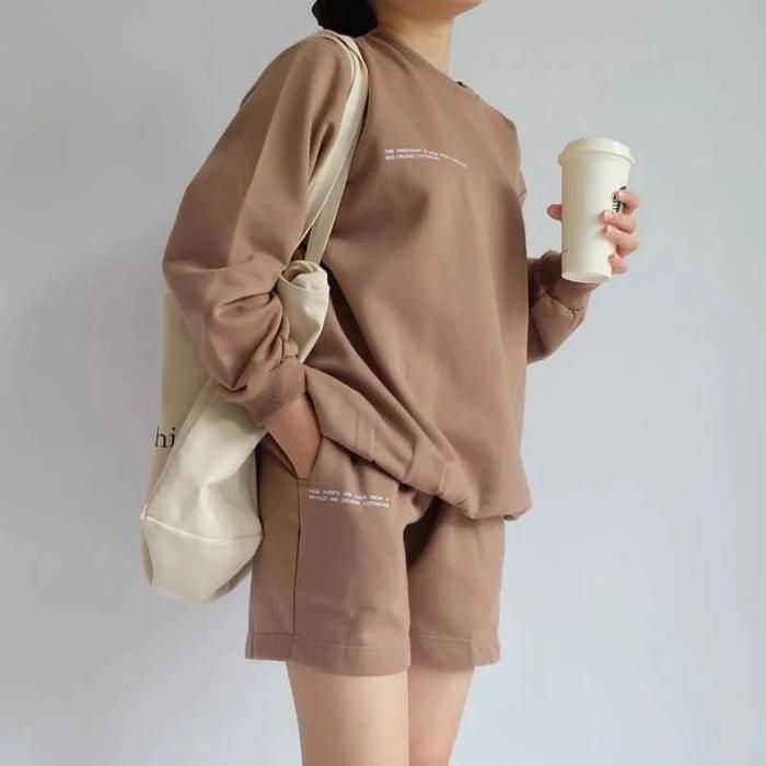 Morra Oneset Sweater + Celana Pendek Setelan One Set Casual Wanita - Mocca All Size