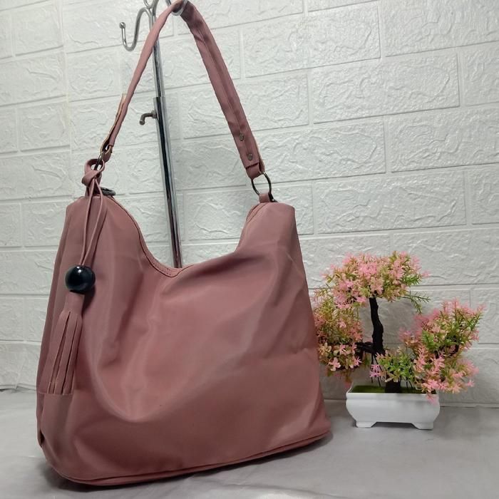 [ BELI LOKAL]KASMAG TAS TOTE HOBO NILON TAS FASHION WANITA Totebag - Hitam Besar