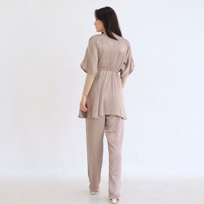 MSMO Miranda Set / Pakaian Set / One Set Wanita Lengan Pendek - Beige
