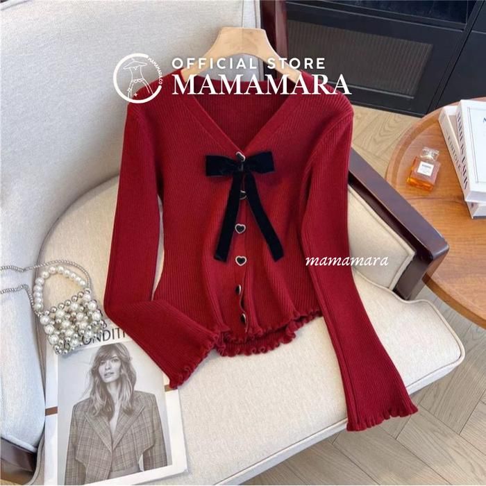 MAMAMARA - Atasan Wanita Blouse Knitwear Pita Rajut Premium High Quality Fit Body Panjang Cardigan Top - ABU