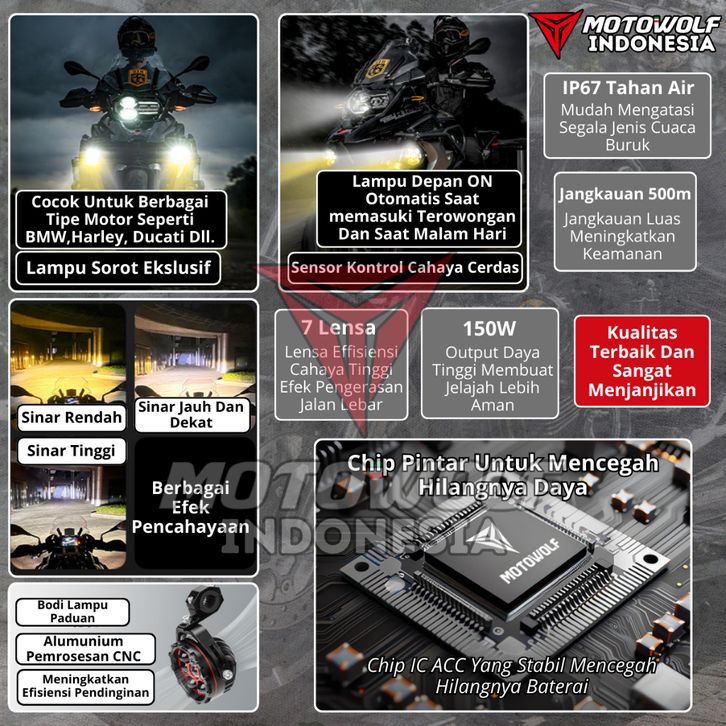 Promo Lampu Tembak Lampu Tembak Lampu Sorot 7 Lensa 6 M0De 150W Anti Air LED BMW Spotlight Motowolf Tank Gun L1 L1B
