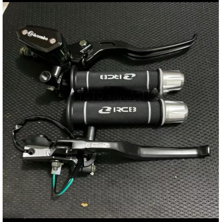 paket set 3in1 master rem tabung oval kaca original + handgrip rcb hg 55 + jalu stang cnc universal