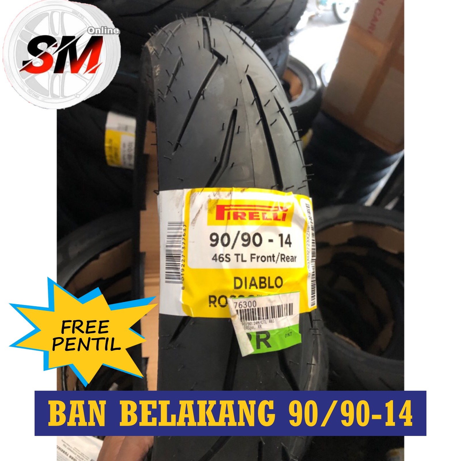 BAN BELAKANG TUBELESS VARIO / BAN BEAT PIRELLI 90/90-14 PIRELLI DIABLO ROSSO SPORT/KINGLAND