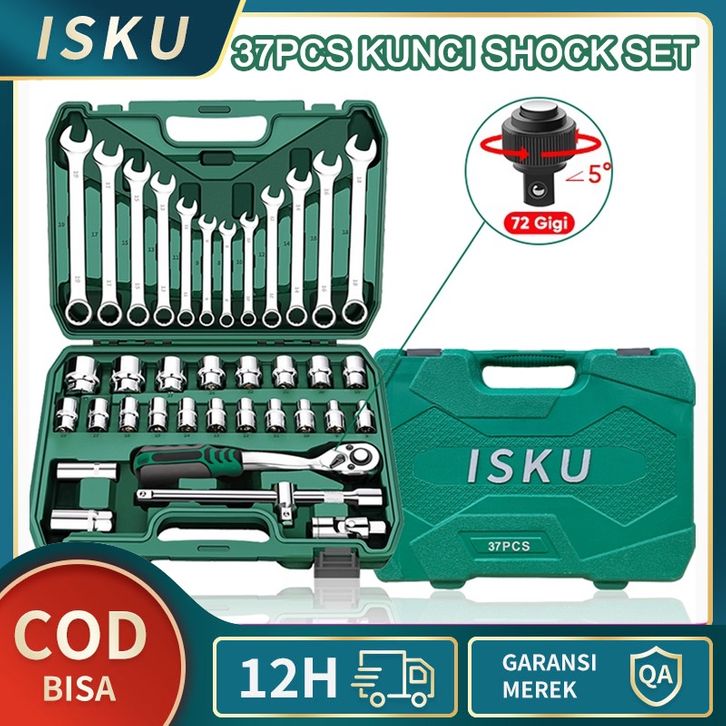 Isku Kunci Shok Set ISKU Kunci Shock Set 37pcs Full Lengkap Socket Toolkit 12pcs Kunci Pas Ring Set Dan 21pcs Mata Shoc