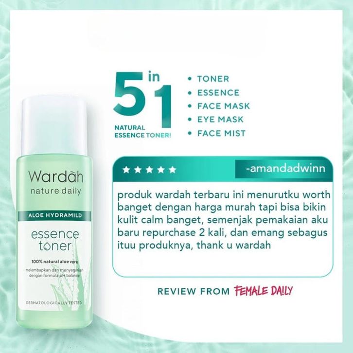 Wardah Nature Daily Aloe Hydramild Essence Toner 100ml / GLOWUP BEAUTY / SKINCARE MAKEUP MURAH ORIGINAL / SET PAKET / OF