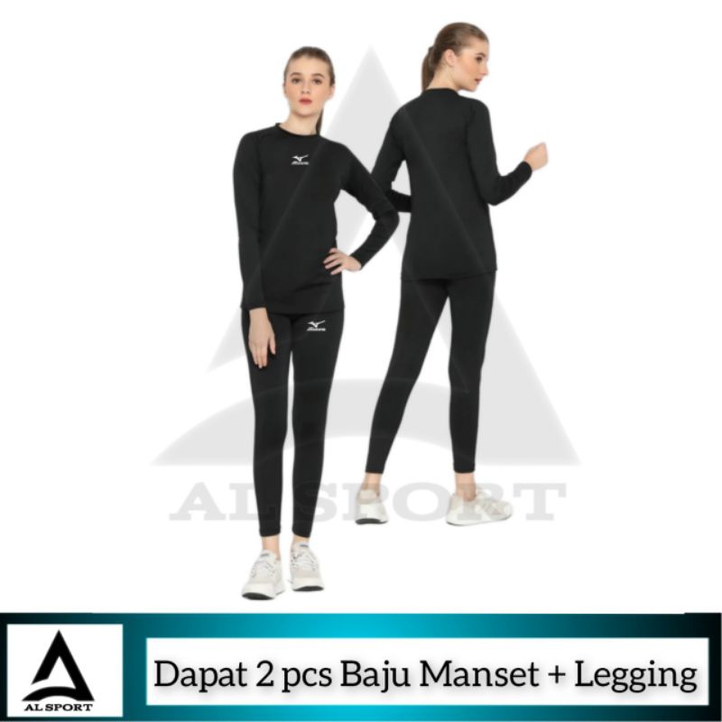 2 IN 1 - STELAN OLAHRAGA WANITA BAJU MANSET LENGAN PANJANG CELANA LEGGING STREET SPORT CEWE SENAM GYM FITNES LARI V