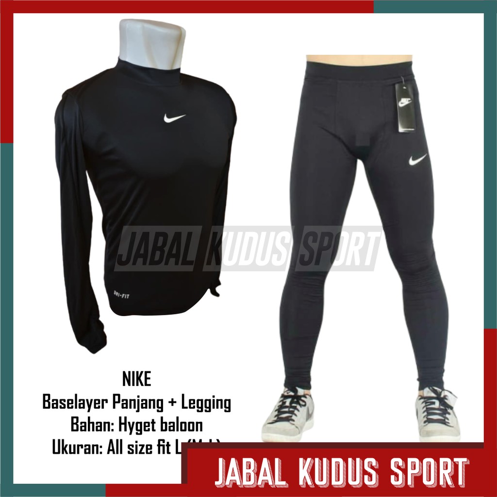 SETELAN BAJU BASELAYER MANSET LENGAN PANJANG + CELANA MANSET PANJANG NIKEE PRIA FUTSAL GYM OLAHRAGA