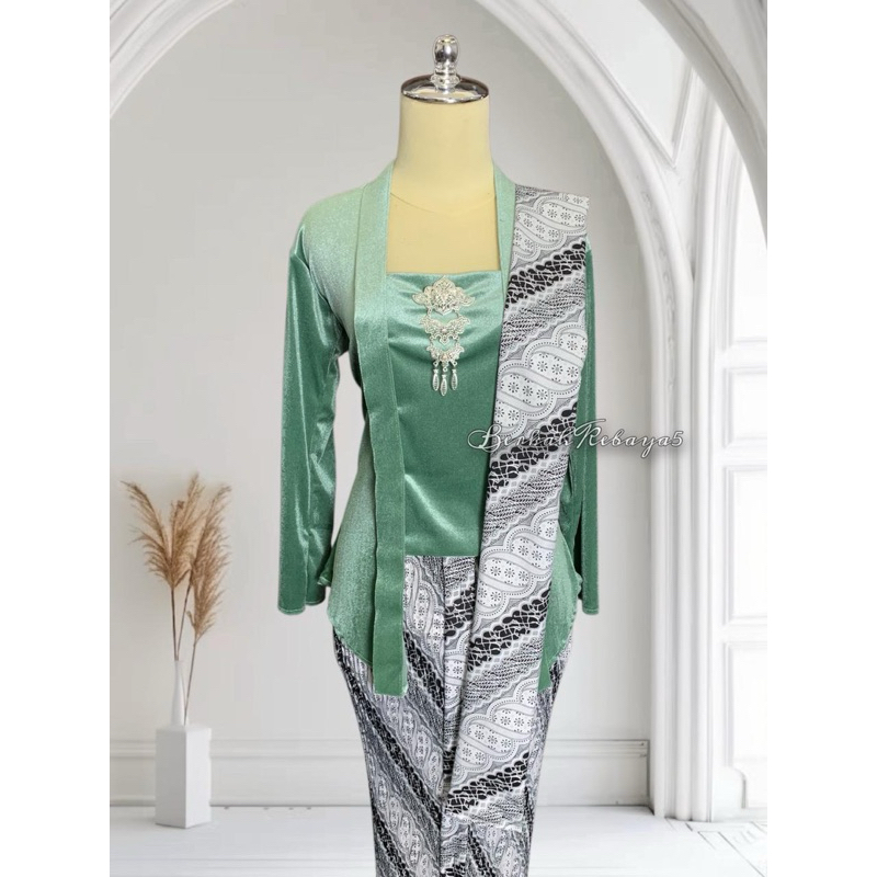 SETELAN KEBAYA KUTU BARU BLUDRU WARNA SOFT / KEBAYA + SELENDANG + JARIK WIRU PLISKET