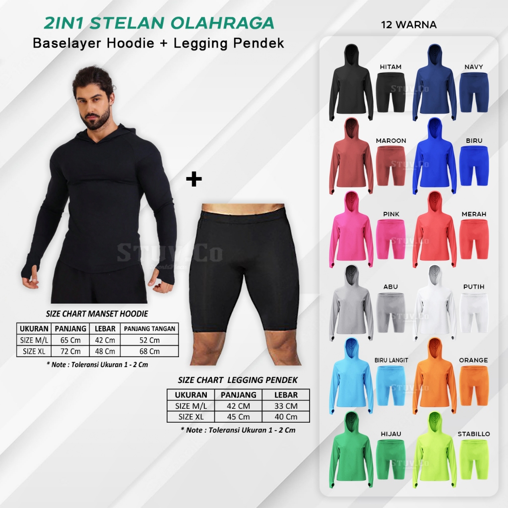 2IN1 MANSET PRIA HOODIE BASELAYER LONGSLEEVE THUMBHOLE MANSET JARI CELANA PENDEK DALEMAN FUTSAL GYM SEPAKBOLA FITNE