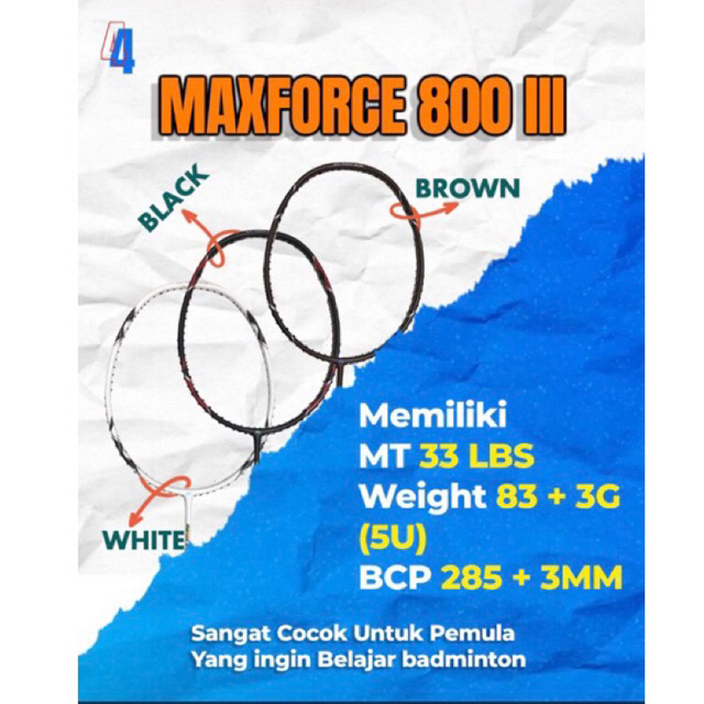 RAKET POWERMAX MAX FORCE 800 iii, M99 ii, EVO 10 ii, AIR STREAM, THUNDER, SPITFIRE, TECTONIC 10 WOVEN, KILLING SHOT 7000