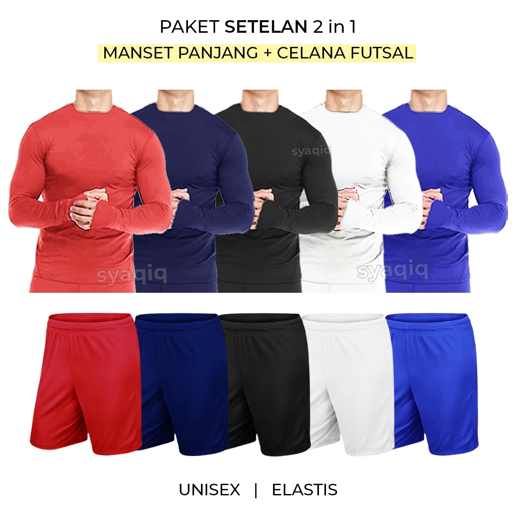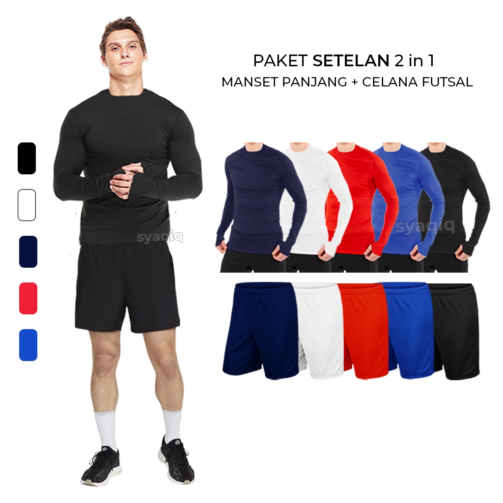 KAOS BASELAYER MANSET LUBANG JARI TANGAN PANJANG CELANA PENDEK KOLOR BOLA OLAHRAGA PRIA WANITA