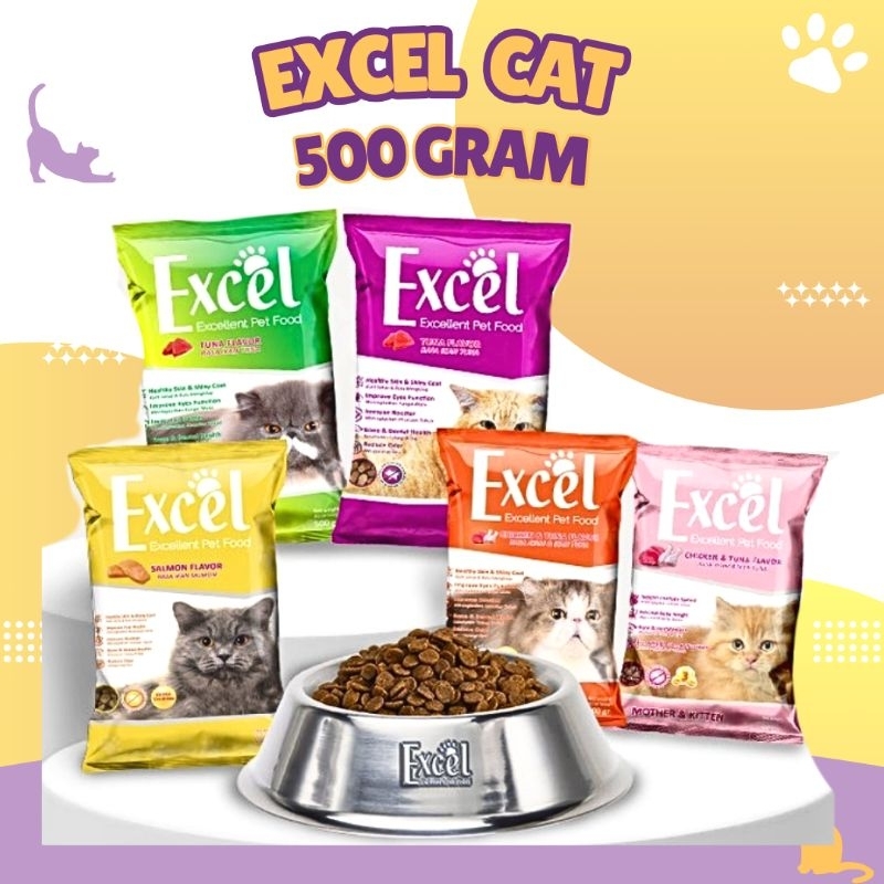MAKANAN KUCING D3W4SA EXCEL TUNA CHICKEN SALMON MOTHER KITTEN IKAN DONAT CAT FOOD 500 GR