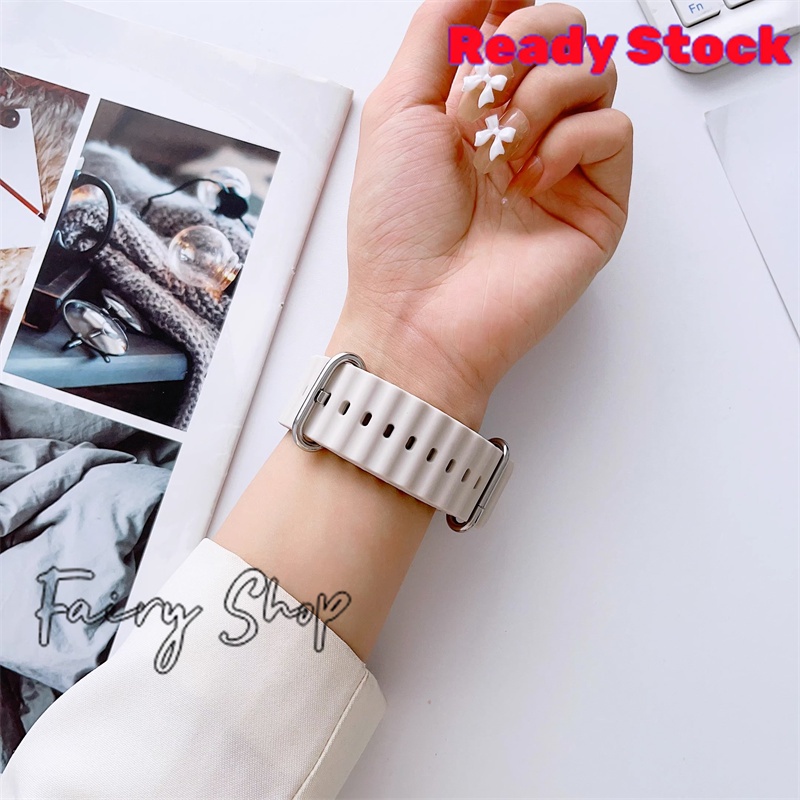 Ready Stock For Silicone Strap For Apple Watch Series Ultra 2 Ultra 9 8 7 6 SE 5 4 3 2 1 iWatch Size 49mm 45mm 41mm 44mm 40mm 42mm 38mm Smart Watchband Bracelet Belt Accessories