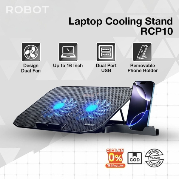 ROBOT Cooling Pad Laptop 10-16 Inch Gaming 2 Kipas Inti Slot HP RCP10 Silent Fan Original Garansi 1 Tahun