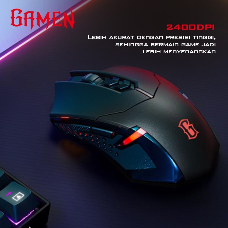 GAMEN Mouse Wireless Gaming 2.4GHz Ergonomic Design 2400 DPI GM300W For Laptop / PC Mouse Laptop Tanpa Kabel