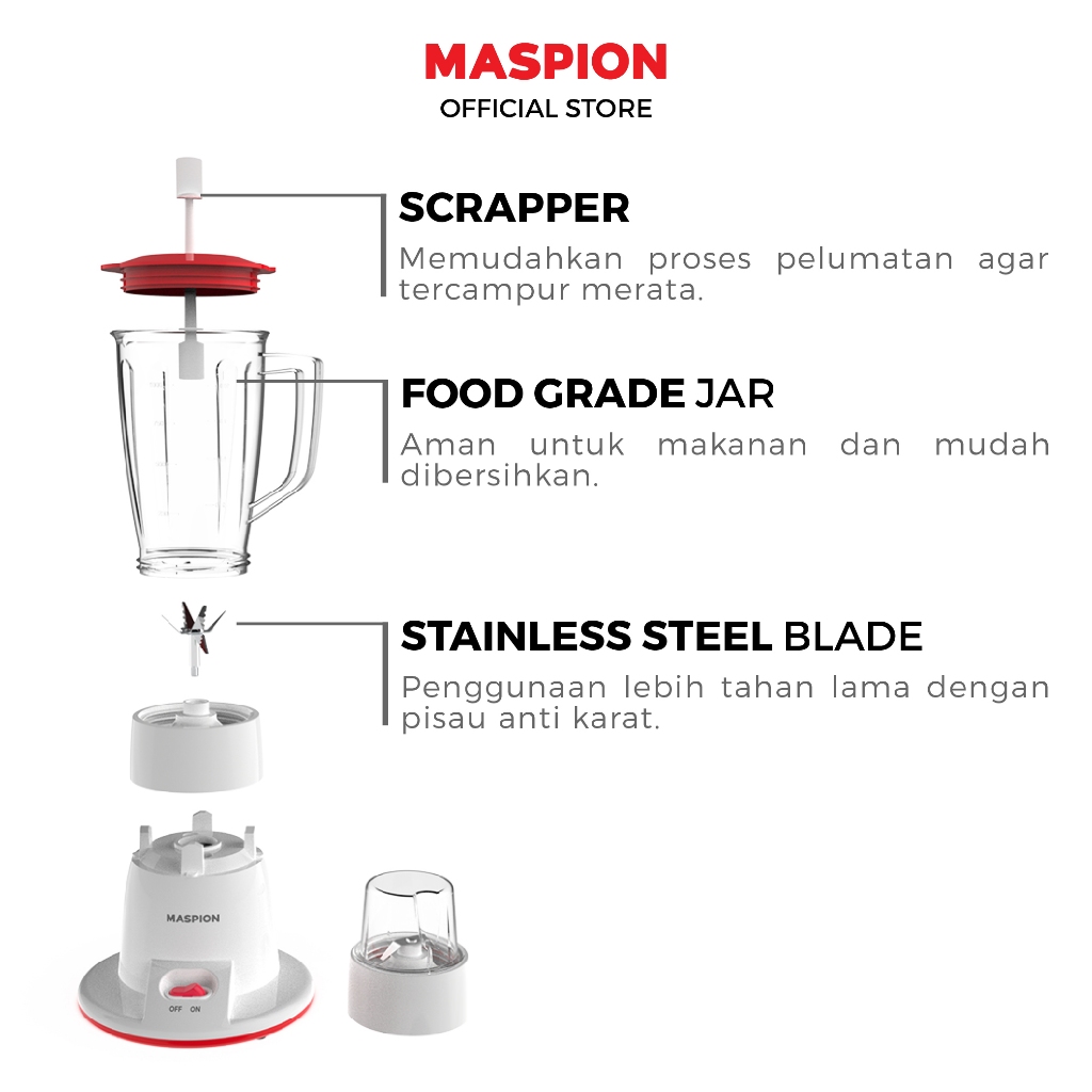 NEW ORIGINAL Maspion Pelumat Blender with Dry Miller 1 Liter MT-1252 PL MT 1252 PL