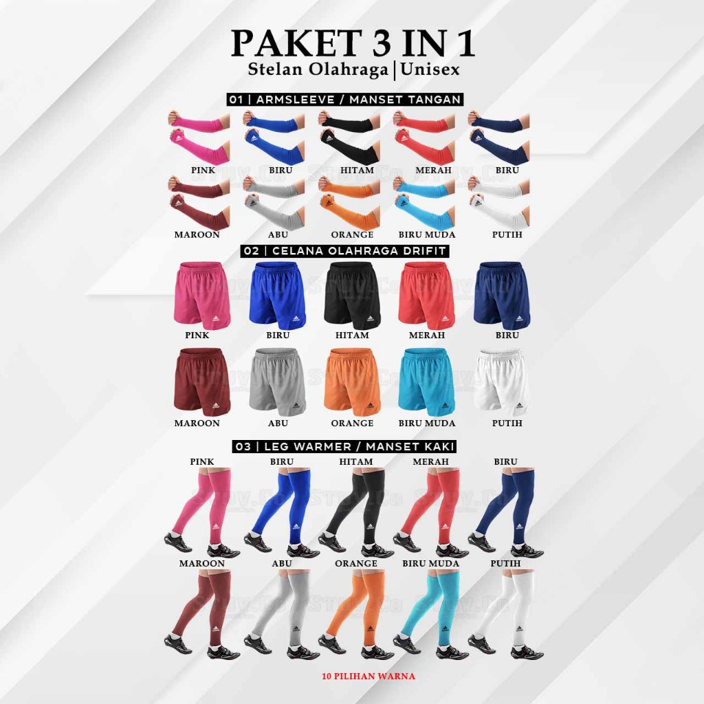 3IN1 STELAN SETELAN DALEMAN CELANA FUTSAL LEG WARMER ARMSLEEVE HANDSOCK OLAHRAGA PELINDUNG LUTUT TANGAN PRIA WANITA