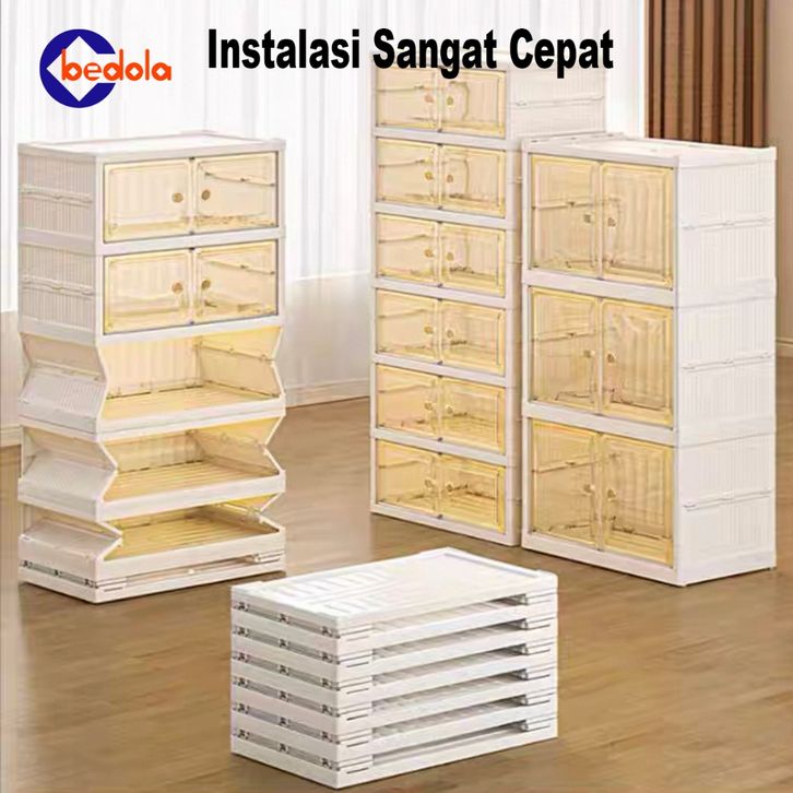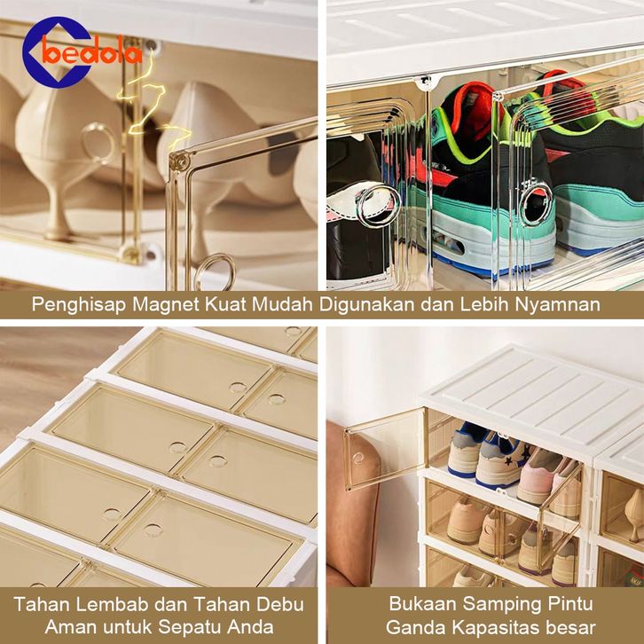 Rak sepatu lipat susun lemari sepatu plastik tertutup transparan kotak sepatu anti debu pintu magnet