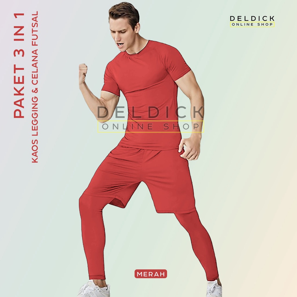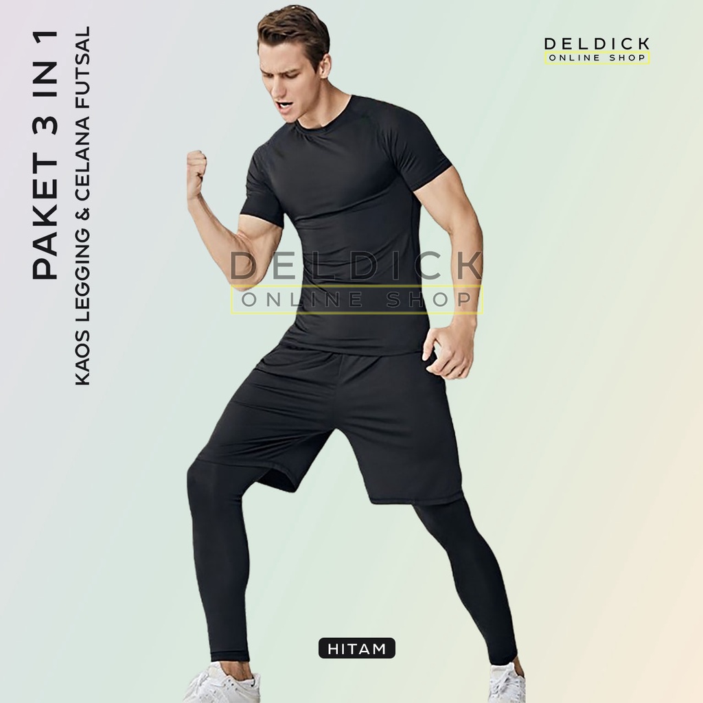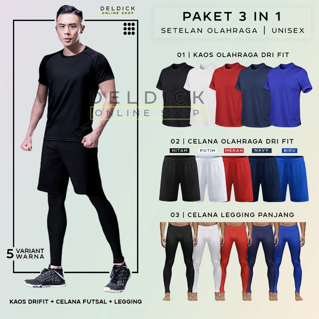 3IN1 STELAN OLAHRAGA KAOS DRIFIT LEGGING PANJANG DAN CELANA PENDEK DRIFIT PRIA WANITA MURAH