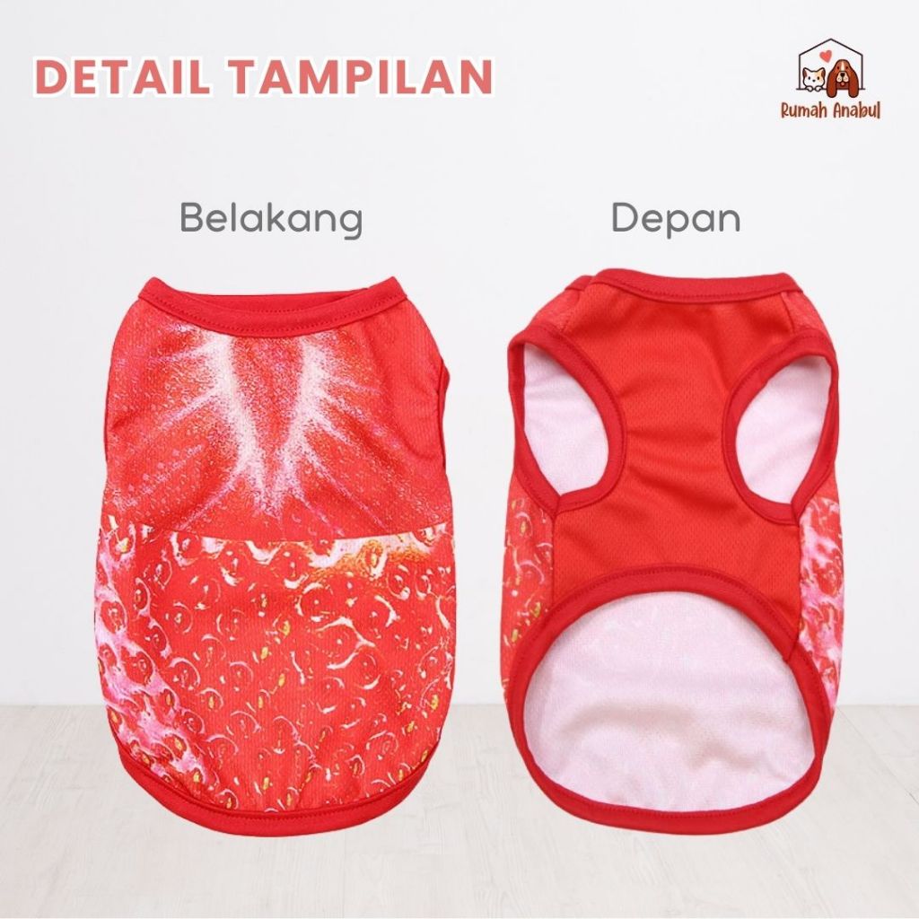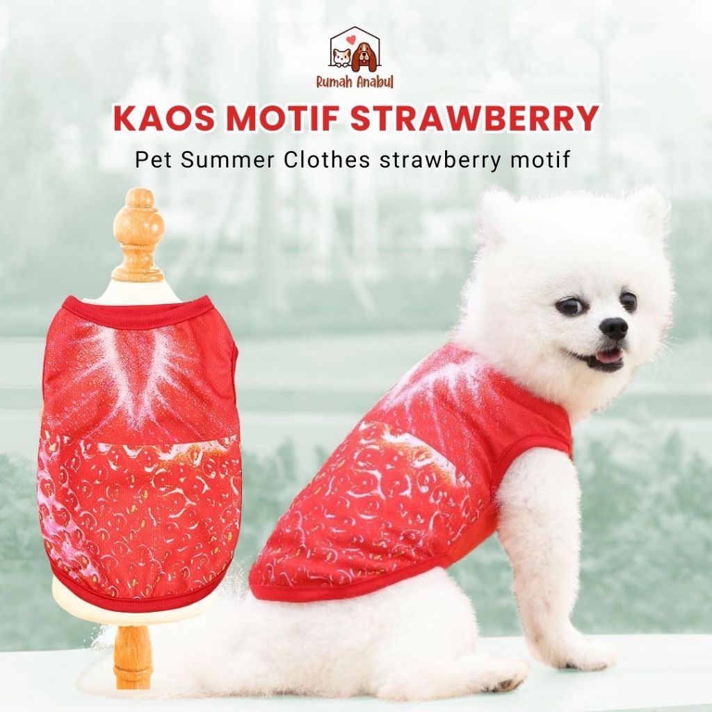 BAJU ANJING KUCING KELINCI MOTIF BUAH / KAOS KUCING ANJING MOTIF STRAWABERY / BAJU LUCU UNTUK ANJING KUCING / KAOS