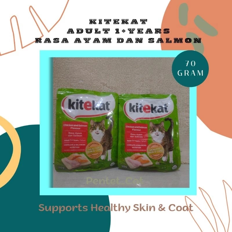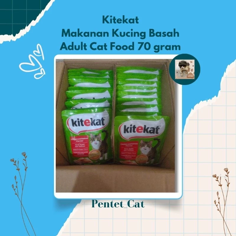 KITEKAT MAKANAN BASAH 70GRAM UNTUK KUCING D3W4SA RASA CHICKEN DAN SALMON
