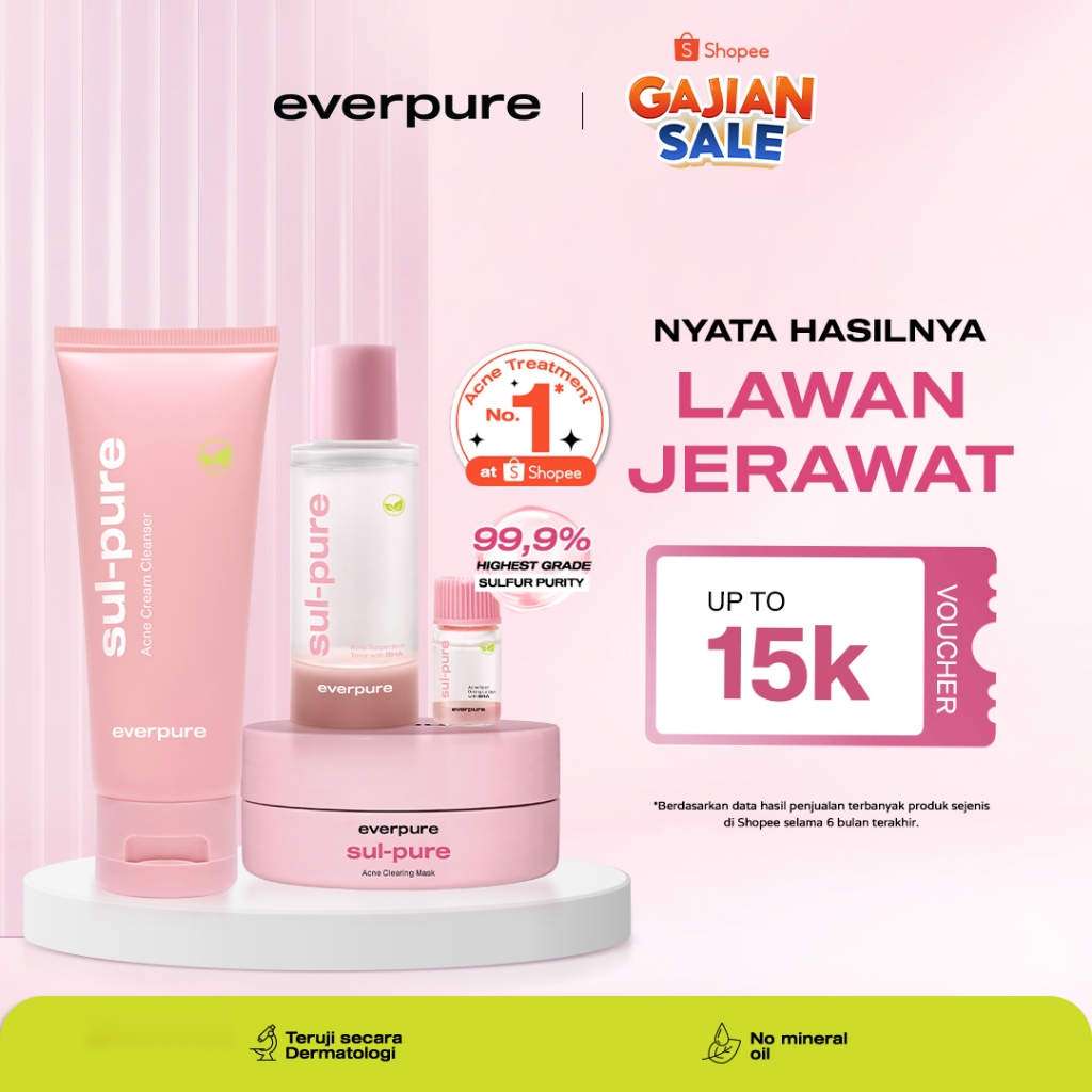 [Sulpure Series] EVERPURE Sul-pure - Paket Perawatan Kulit Berjerawat Dan Bebas Pori (Sabun Cuci Muka, Obat Totol Dan Ma