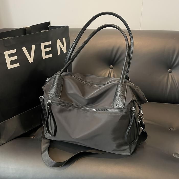 Tas Selempang Bahu Wanita Kapasitas Besar Anti Air Kulit Nilon Hitam Sekolah Tote Totebag Perempuan Dewasa - hitam
