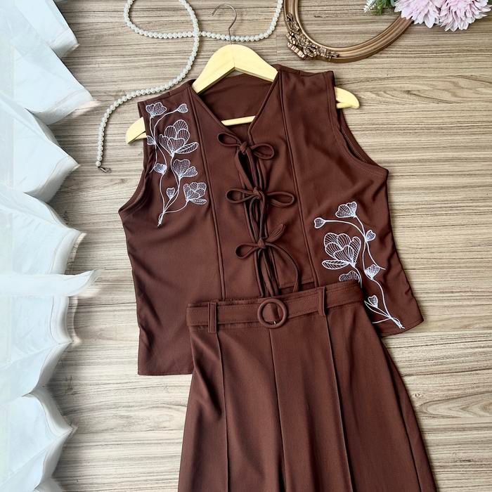 BM - DHIVA CHOICE - Setelan wanita Smith motif Embroidery celana panjang - setelan wanita - ABU MUDA