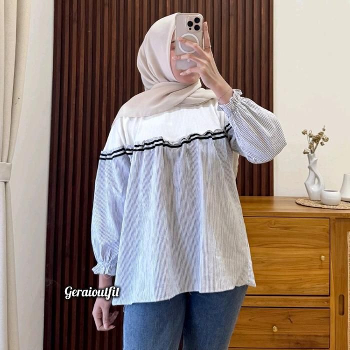 ZAMY BLOUSE KATUN SALUR MIX KNIT ATASAN WANITA - hitam L