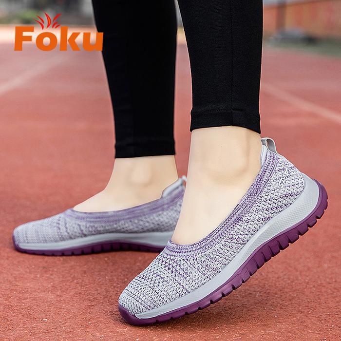 FOKU Sepatu Wanita Santai Sepatu Sneakers Wanita Sepatu Slip On Wanita Terbaru - Gray 36