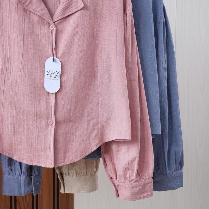 Kemeja / Atasan wanita crop top / Blouse wanita lengan panjang - dusty