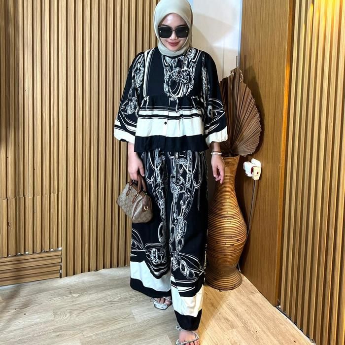 Sanaya Set Rayon Batwing Rempel / Setelan wanita - Sanaya 01