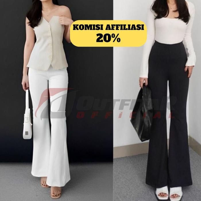 OUTFITAR - Flare Pants Highwaist Cutbray - Celana Panjang Wanita - IVORY M UNTUK BB 40-55KG