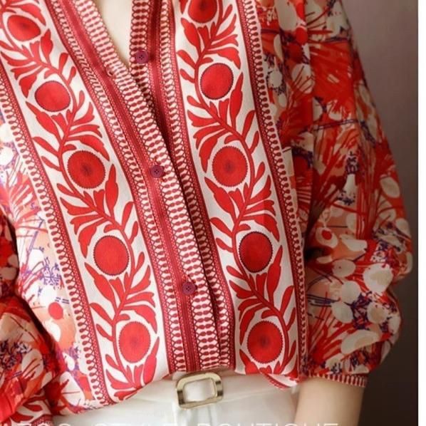 [Basica Moda] 0749 Atasan Top Blouse Wanita Redplum Kancing Motif - Red