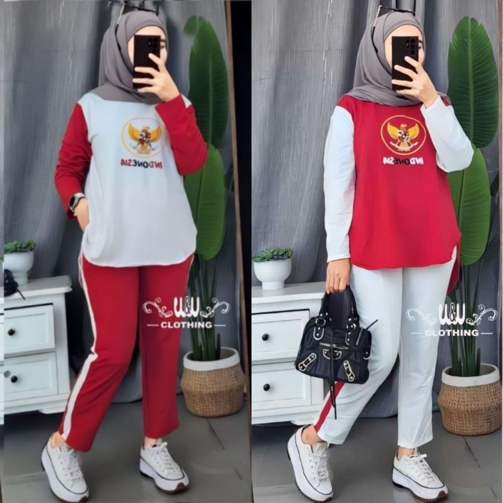 SETELAN GILGA SET CRINKLE MERAH PUTIH 17 AGUSTUS AN WANITA / BAJU SETELAN DIRGAGAYU RI - BAJU OLAHRAGA SENAM WANITA TERBARU