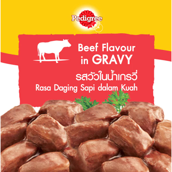PEDIGREE BEEF FLAVOUR IN GRAVY 130 GR WET FOOD - MAKANAN BASAH UNTUK ANJING