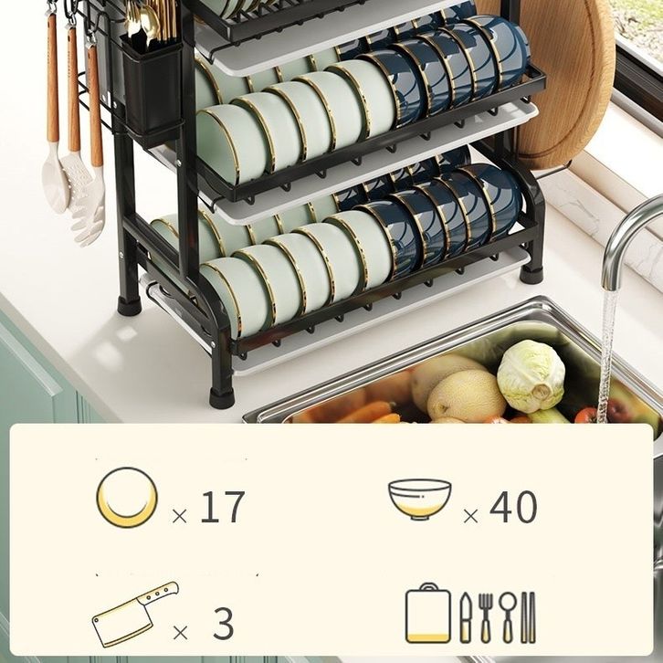 Rak Piring Stainless Steel Rak Cuci Piring Rak Dapur Penyimpanan 3 Susun Rak Mangkuk Piring
