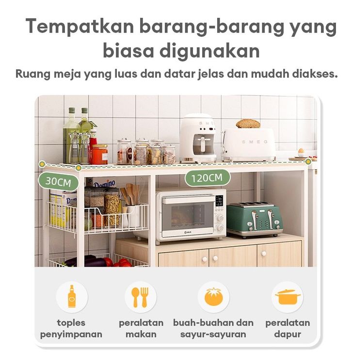 Rak Dapur Set 120x30x80cm Rak Dapur Susun Serbaguna Minimalis Rak Oven Rak Microwave