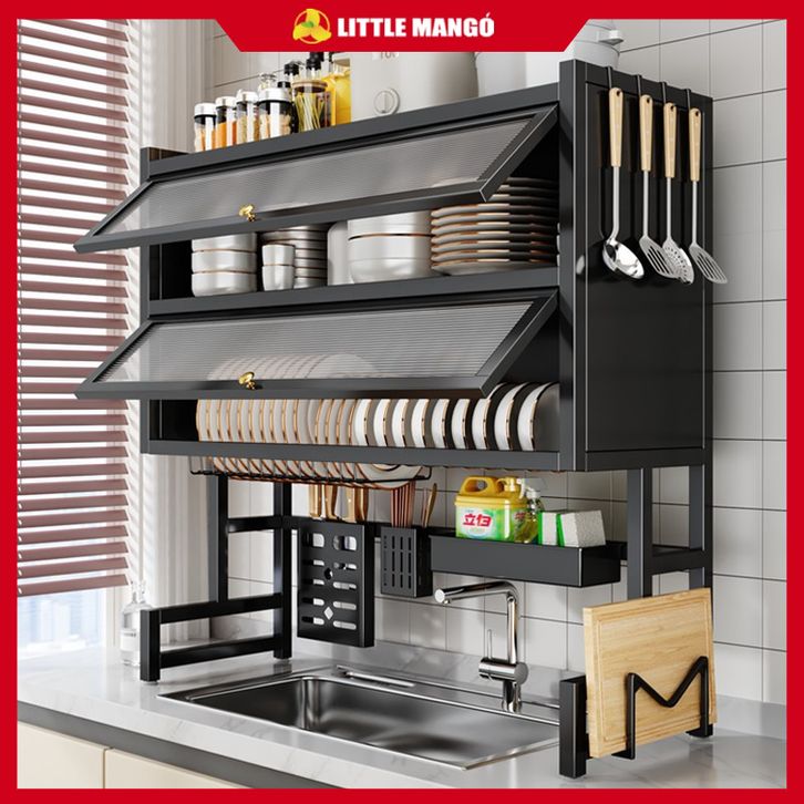Rak Piring Wastafel 2 Lapis Anti Debu dengan Penutup & Tatakan Anti Bocor/F62