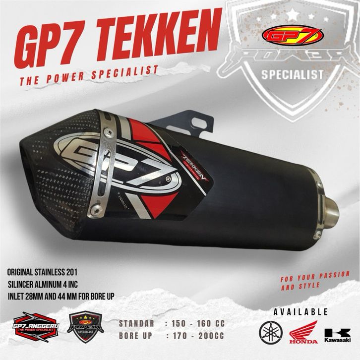Knalpot Motor Racing KNALPOT RACING GP7TEKKEN BLACK KENALPOT KLX CRF150L WR155 STANDAR BOREUP COMPETISI