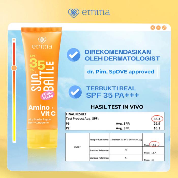 Emina Sun Battle Bright Glow SPF 35 PA+++ - Sunscreen Serum Amino Vitamin C