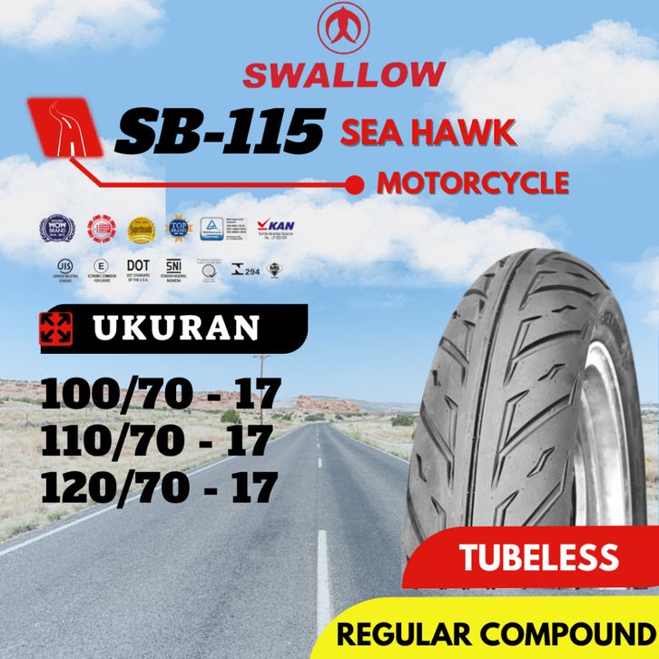 BAN LUAR SEPEDA MOTOR SWALLOW SB-115 SEA HAWK 50/90 60/80 70/90 80/90 90/80 100/70 110/70 120/70 Ring 17 Tubeless