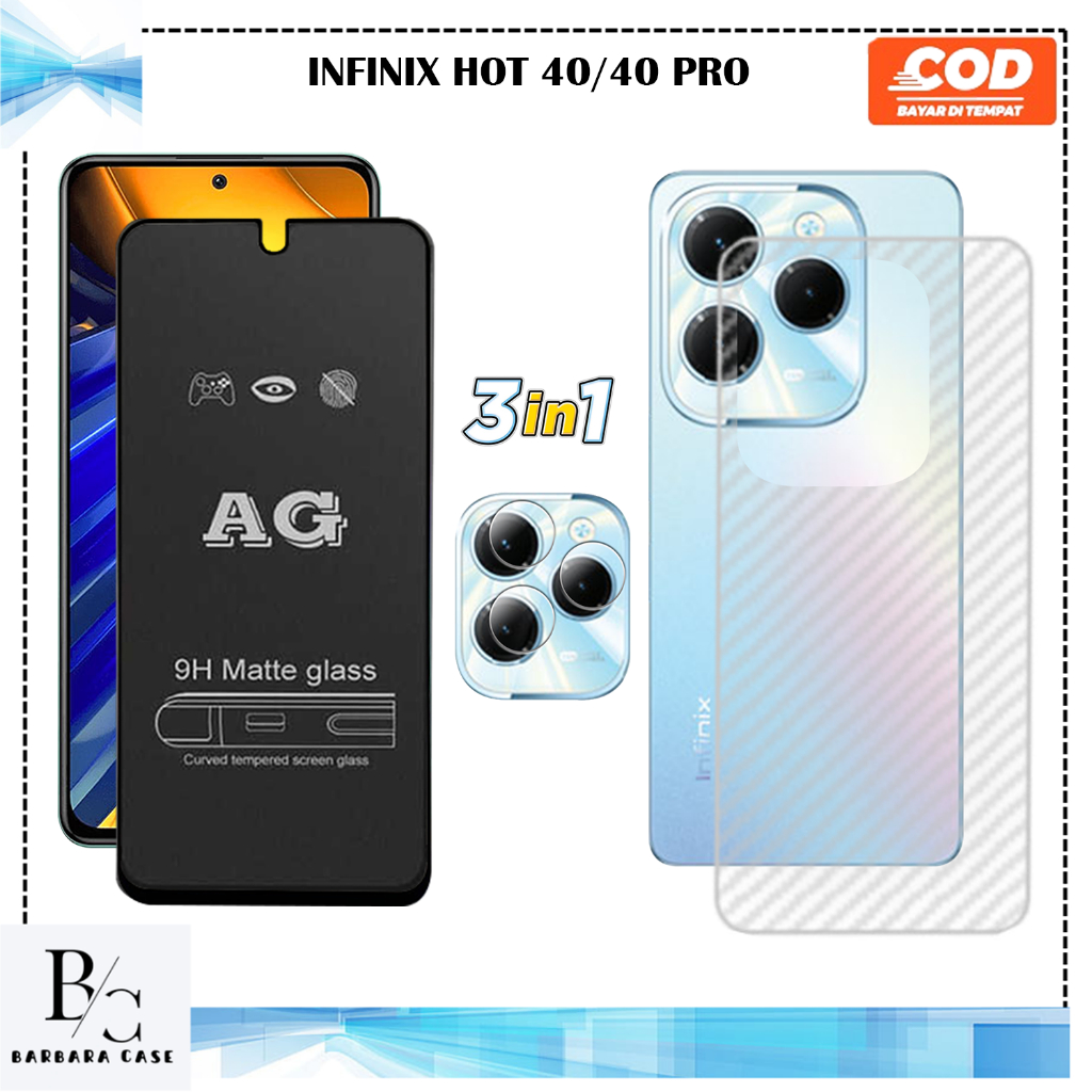 PAKET 3IN1 TEMPERED GLASS INFINIX HOT 40 40I 40 PRO ANTI GORES KACA FULL COVER HIGH QUALITY MEWAH