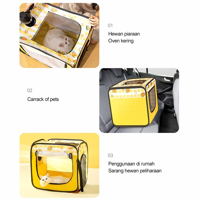 KANDANG KUCING LIPAT KOTAK PENGERINGAN RAMBUT HEWAN PELIHARAAN DAPAT DILIPAT UNTUK MEMUDAHKAN PENYIMPANAN